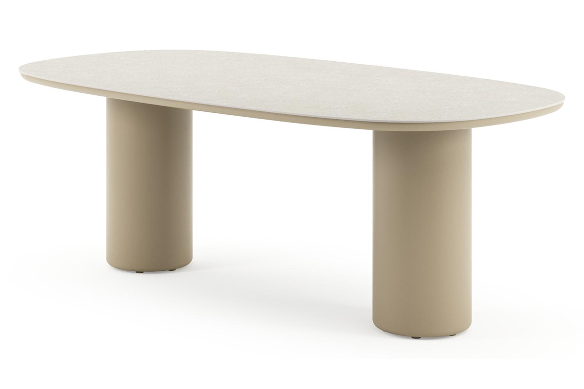Amico tuintafel bombo in beige aluminium en volkeramiek Shilin - L 210 x B 110 x H 73.5 cm | Exterioo