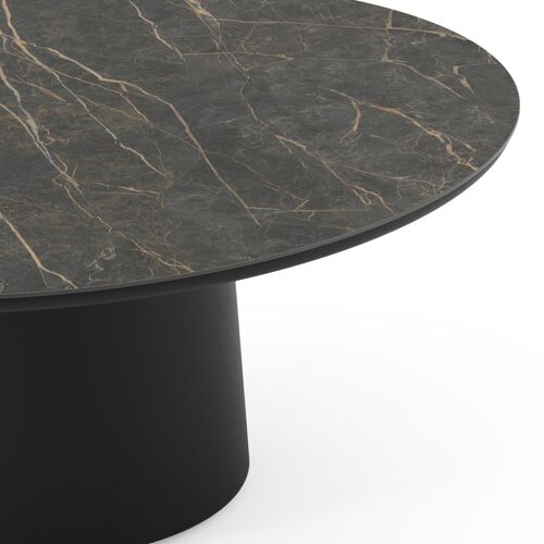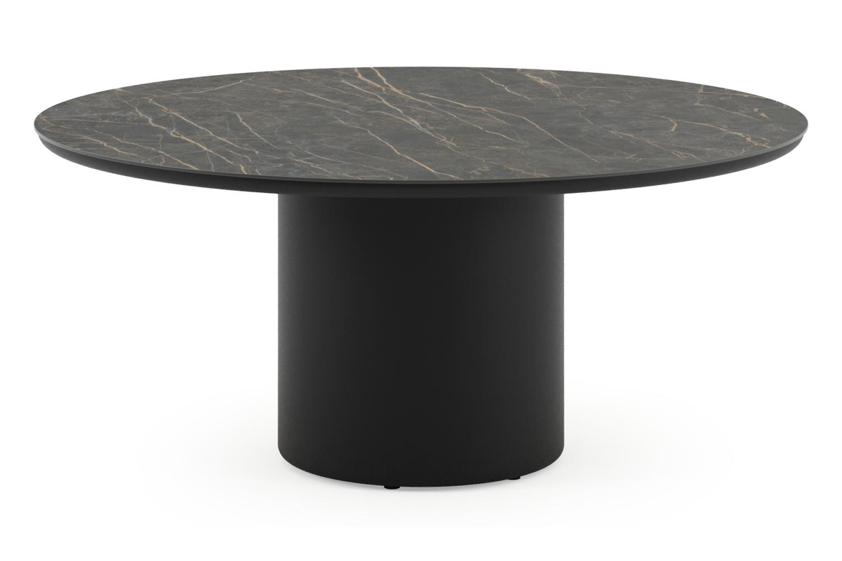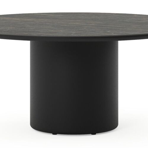 Amico low dining tuintafel rond in zwart aluminium en volkeramiek Black Obsession - Dia. 148 x H 61 cm | Exterioo