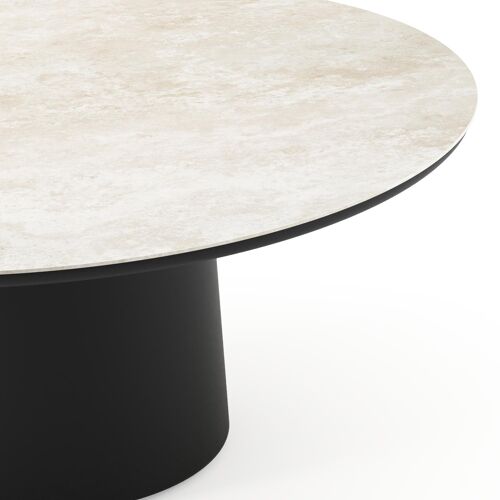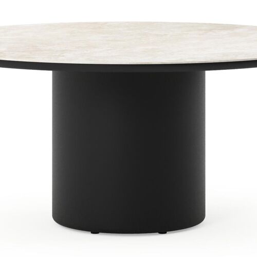 Amico low dining tuintafel rond in zwart aluminium en volkeramiek Rapolano - Dia. 148 x H 61 cm | Exterioo