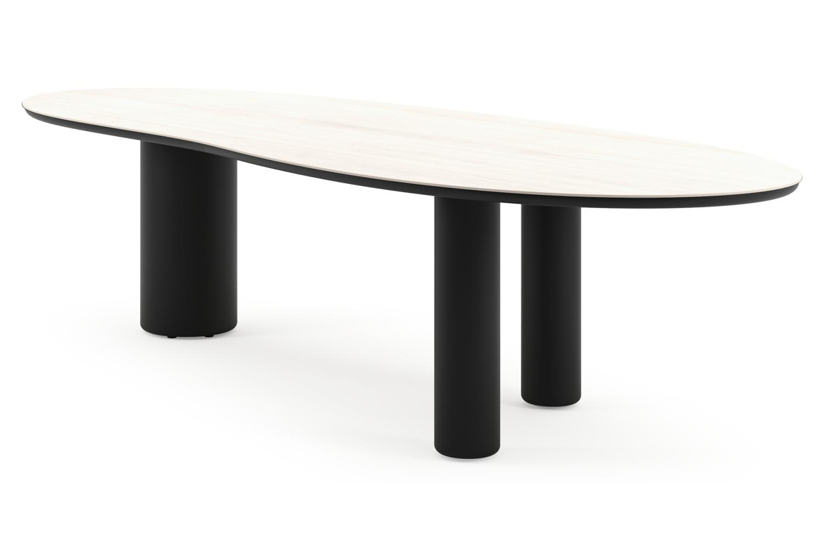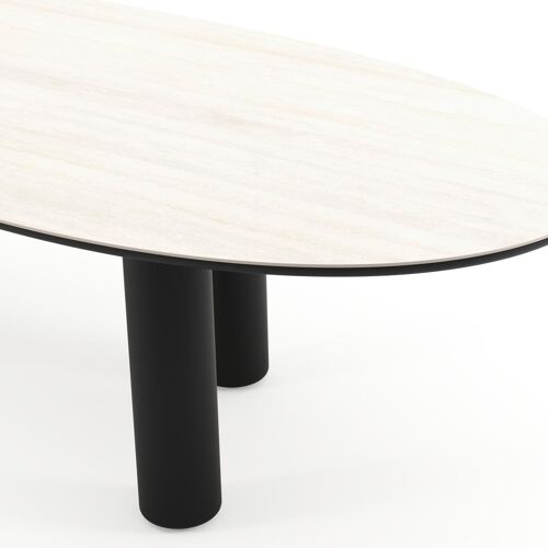 Amico tuintafel organisch in zwart aluminium en volkeramiek Travertino Bianco - L 320 x B 120 x H 73.5 cm | Exterioo