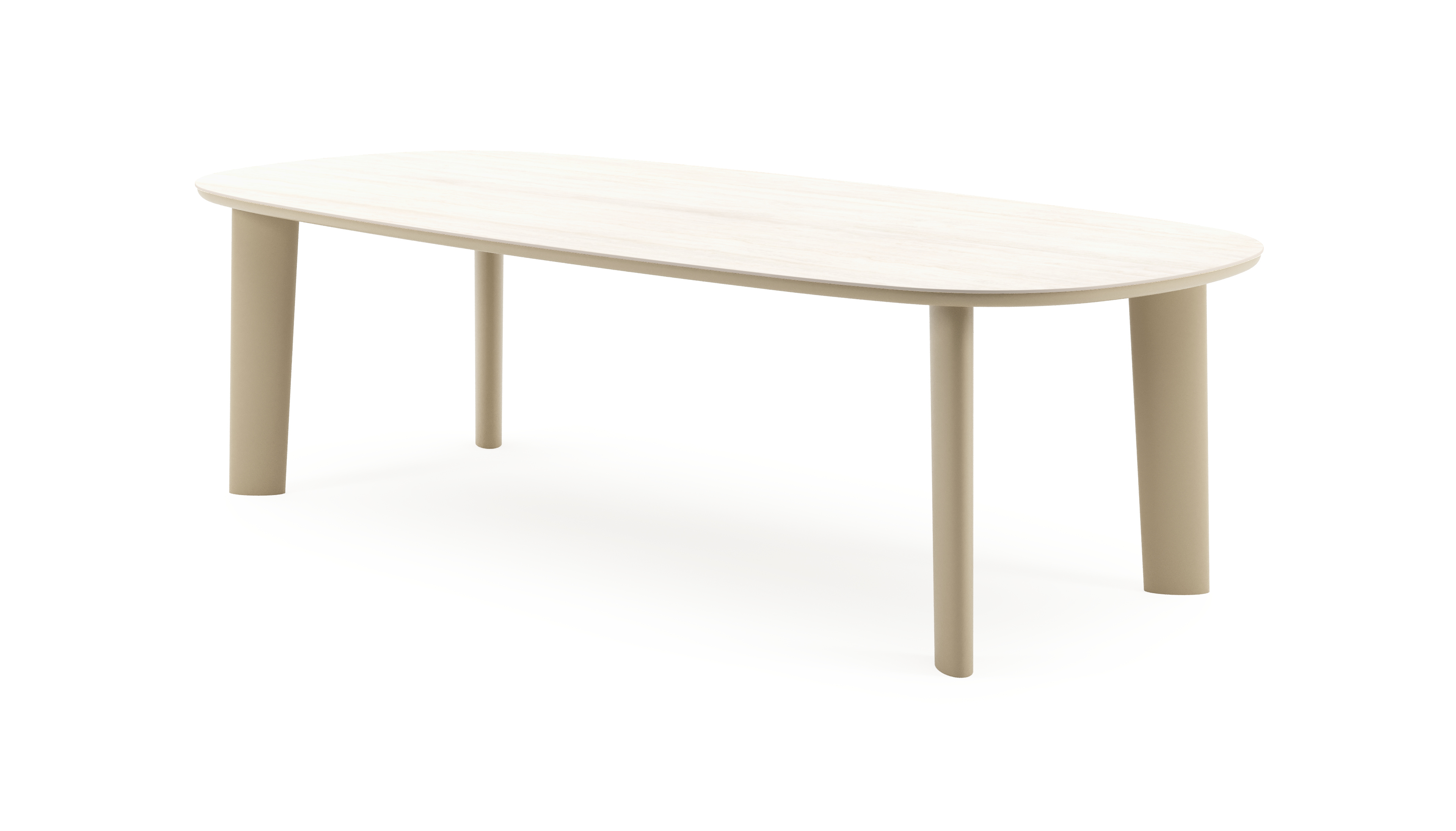 Amico tuintafel bombo in beige aluminium en volkeramiek Travertino Bianco - L 270 x B 125 x H 73.5 cm | Exterioo tuinmeubelen