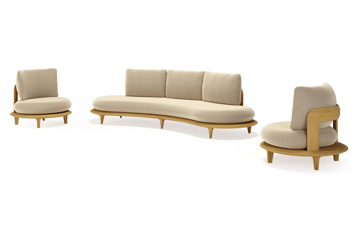 Bomero loungeset in teak met althea camel all weather cosytica kussen | Exterioo
