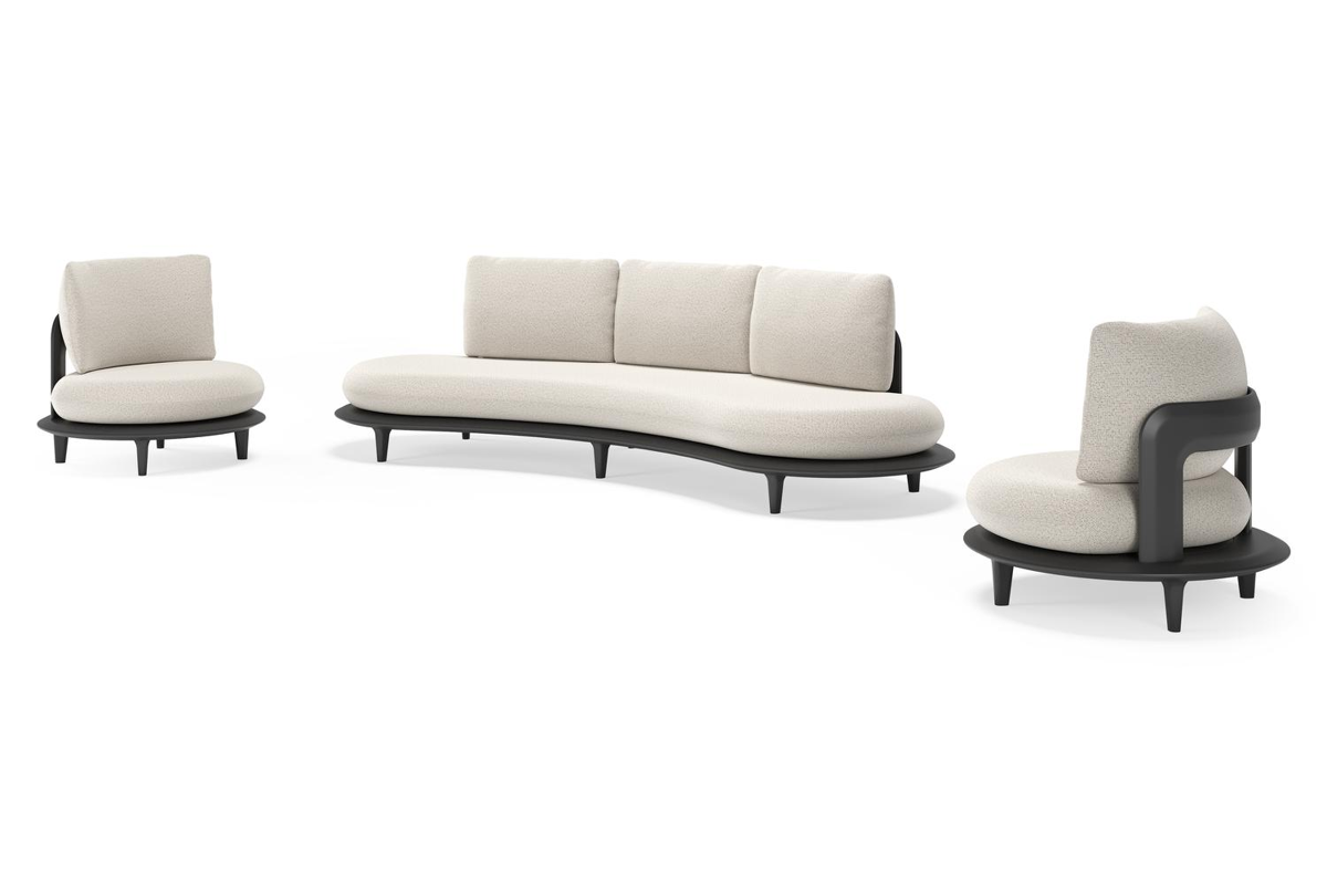 Bomero loungeset in zwart aluminium met firenze natural all weather solica kussen | Exterioo