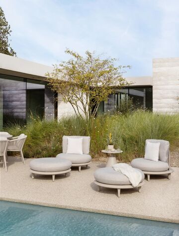 Bomero poef in beige aluminium met firenze natural all weather solica kussen | Exterioo