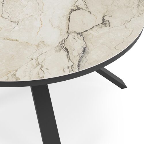 De ronde Cesano tafel heeft een typische, herkenbare poot. Bovendien heb je aan een ronde tafel een gezellige tafelbeleving omdat je tegenover elkaar kunt zitten.