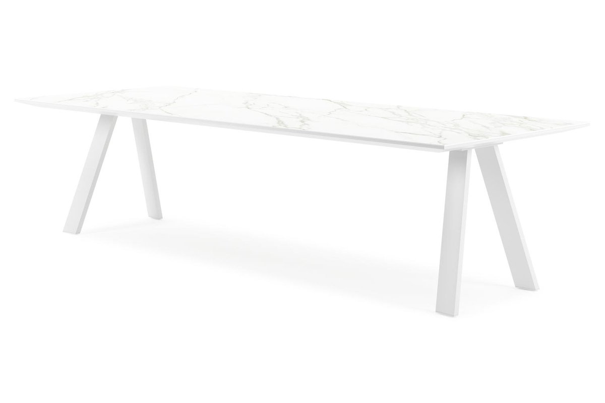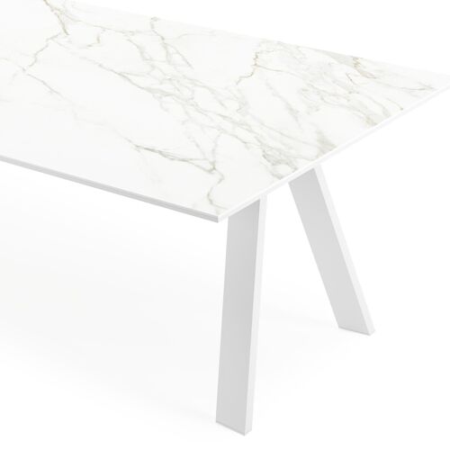 De Cesano tafel onderscheidt zich door zijn stijlvolle onderstel met omgekeerde V-poten, wat een eigentijdse en elegante uitstraling geeft. Met zijn tijdloze charme voegt de Cesano tafel een vleugje moderne klasse toe aan elk interieur.