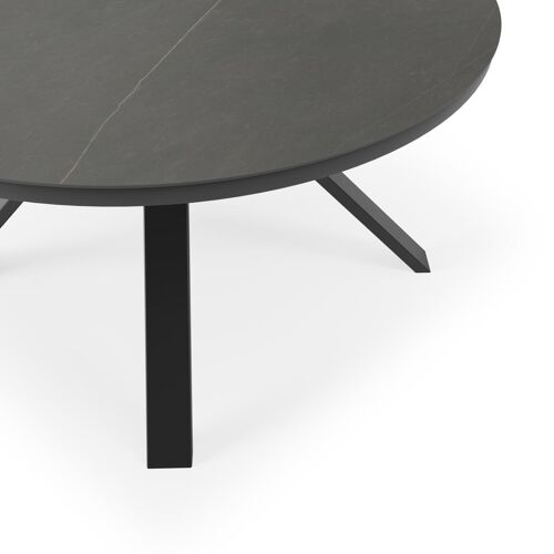 De ronde Cesano tafel heeft een typische, herkenbare poot. Bovendien heb je aan een ronde tafel een gezellige tafelbeleving omdat je tegenover elkaar kunt zitten.