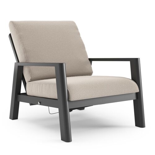 Cirello loungestoel in zwart aluminium met lopi fossil all weather sunbrella® luxe kussen | Exterioo