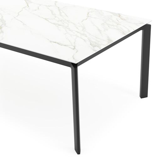 Cirello tuintafel rechthoekig in zwart aluminium en volkeramiek Calacatta - L 280 x B 110 x H 75 cm | Exterioo