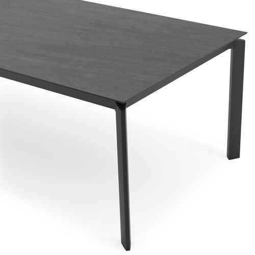 Basalt Black is geïnspireerd op de basaltsteen, een grijszwart vulkanisch stollingsgesteente. Kenmerkend voor dit tafelblad is de donkere kleur. In combinatie met zwarte tafelframes straalt dit rijk gedetailleerde model extra kracht uit.