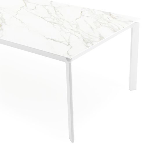 Calacatta is een tafelblad met witte basis die afgewerkt is met grijze aders voor een karakteristieke marmerlook.