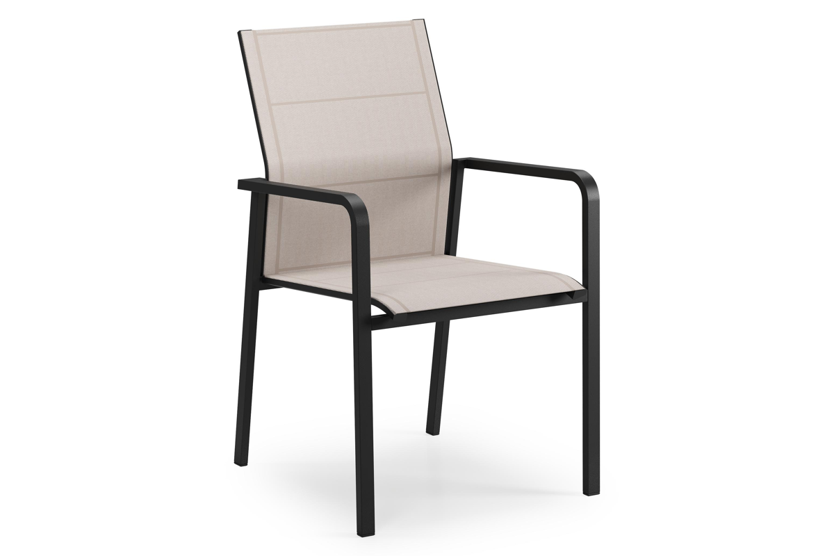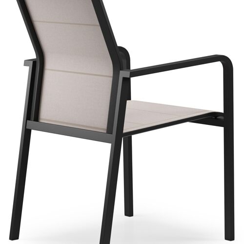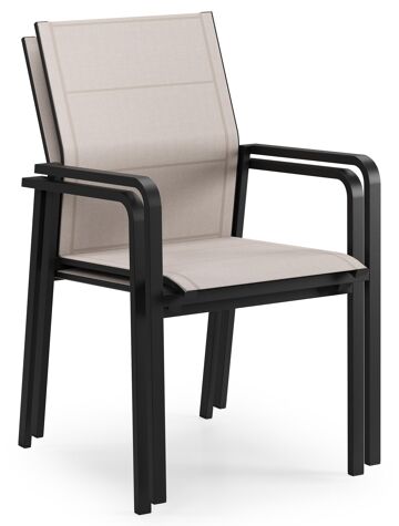 Como stapelbare tuinstoel in zwart aluminium en beige textilene | Exterioo