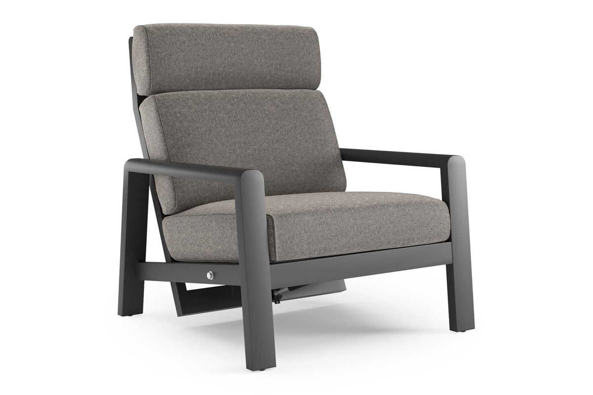Cosenzo loungestoel in zwart aluminium met chartres drizzle all weather sunbrella® luxe kussen | Exterioo
