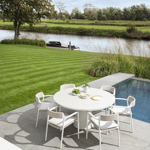 Donato tuintafel in wit aluminium en volkeramiek shilin - Dia. 148 x H 76 cm | Exterioo