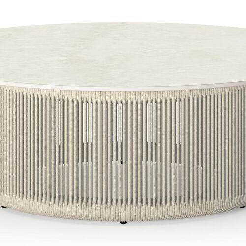 Erla loungetafel in beige aluminium en beige rope met sintered stone beige - Dia. 90 x H 30 cm | Exterioo