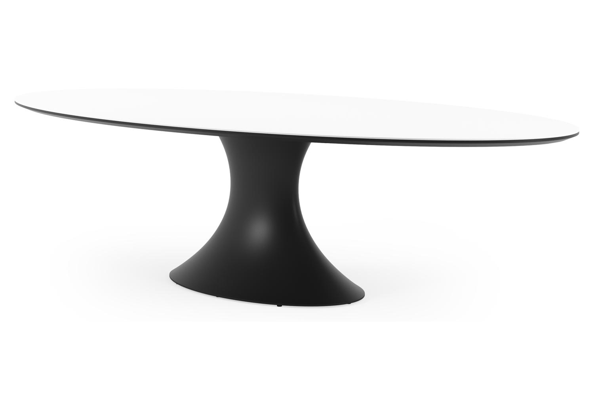 Fano tuintafel ovaal in zwart aluminium en volkeramiek Arctic White - L 290 x B 148 x H 75 cm | Exterioo