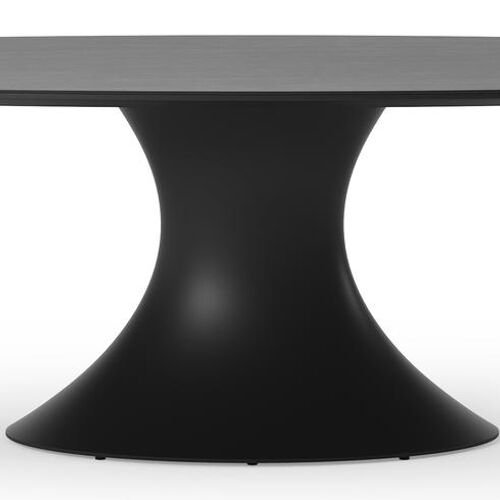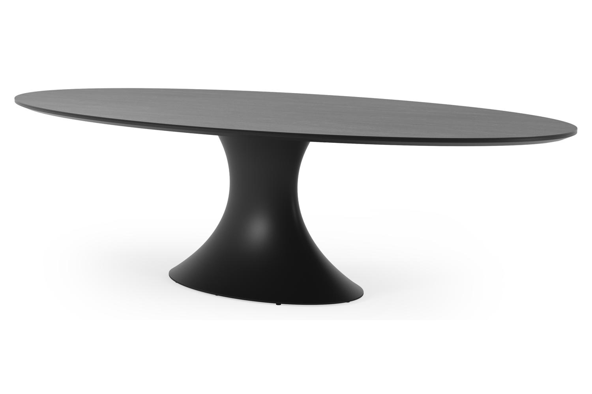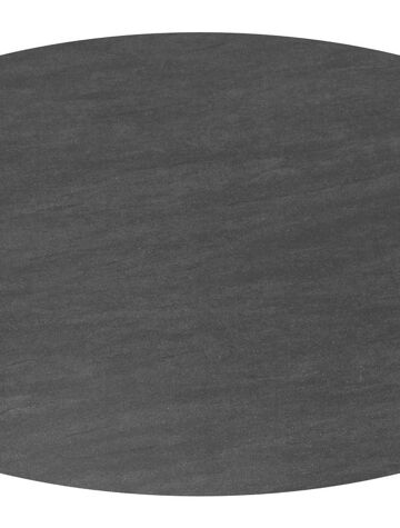 De ovale Fano heeft een centrale, typische stijlvolle poot. Het frame is gemaakt van aluminium een licht, maar sterk en roestvrij materiaal dat zeer geschikt is voor tuinmeubelen. Deze tafel is afgewerkt met een Basalt Black tafelblad. Die is geïnspireerd op de basaltsteen, een grijszwart vulkanisch stollingsgesteente. Het voordeel van volkeramische tafelbladen is dat ze krasbestendig zijn en bestand zijn tegen alle weersomstandigheden.