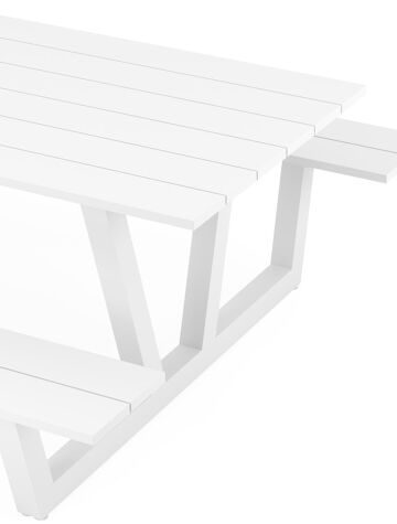 Felino picknicktafel in wit aluminium - L 220 x B 176 x H 76 cm | Exterioo