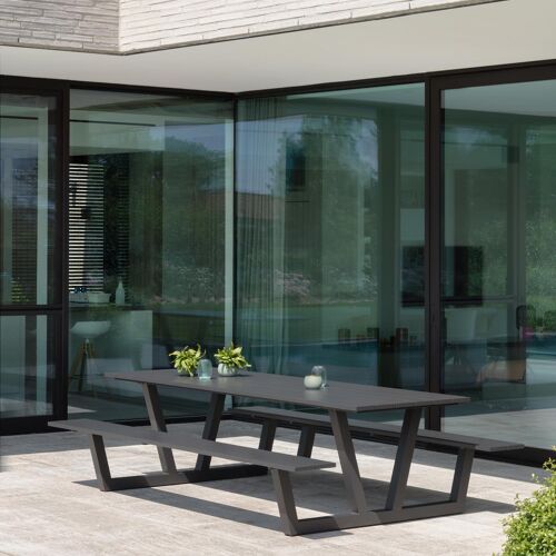 Felino picknicktafel in zwart aluminium - L 260 x B 176 x H 76 cm | Exterioo
