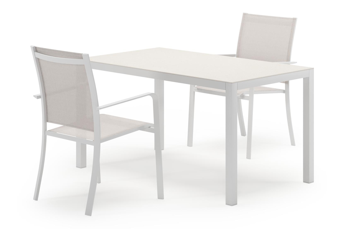 Feltro tuinset in wit aluminium en sintered stone Crema minerale met 2 Calobra tuinstoelen | Exterioo