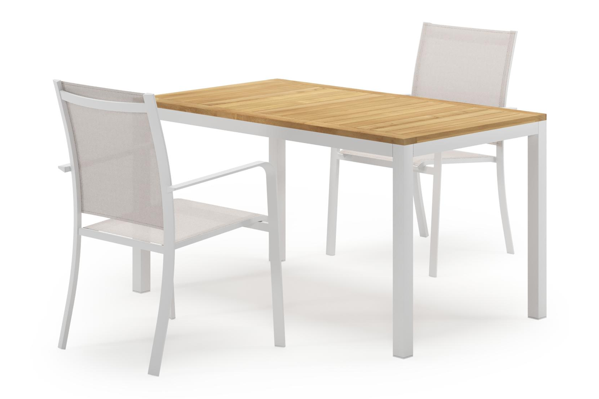 Feltro tuinset in wit aluminium en teak Natural Finish met 2 Calobra tuinstoelen | Exterioo