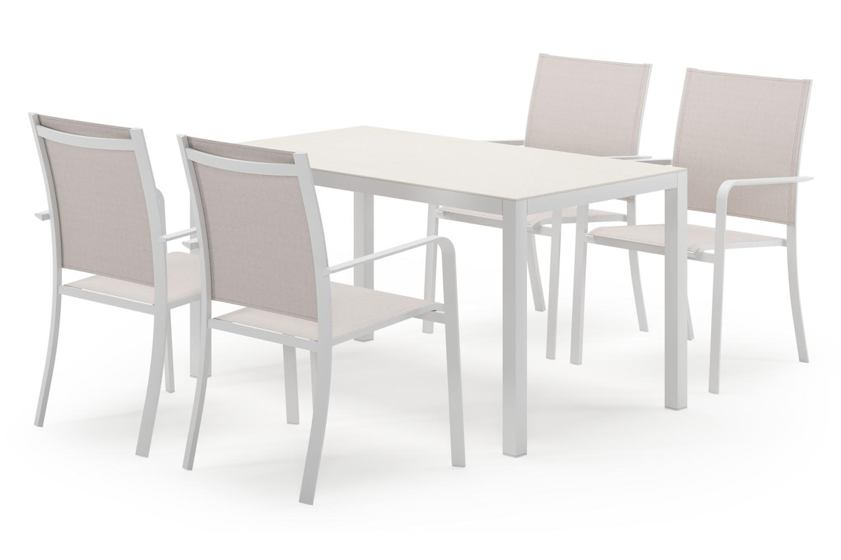 Feltro rechthoekige tuinset in wit aluminium en sintered stone crema minerale met 4 Calobra tuinstoelen | Exterioo