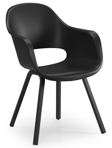 De Artena stoel heeft een uniek design dankzij de opening in de kuip. Het gebogen stoelframe is gemaakt uit roestvrij aluminium. De kuip met armleuningen is gemaakt uit stevige kunststof, een synthetisch en onderhoudsvriendelijk materiaal.