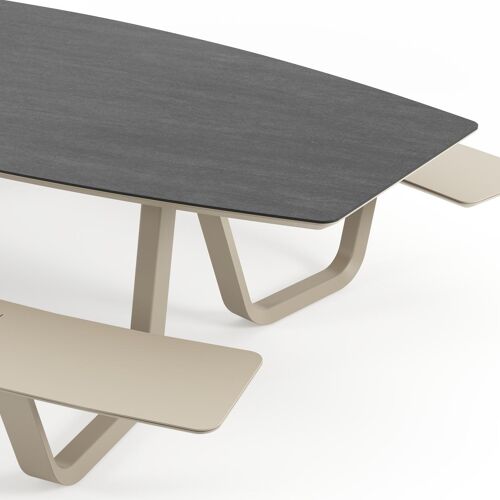 Forno picknicktafel bootvorm in beige aluminium en volkeramiek Basalt Black - L 280 x B 192 x H 72 cm | Exterioo