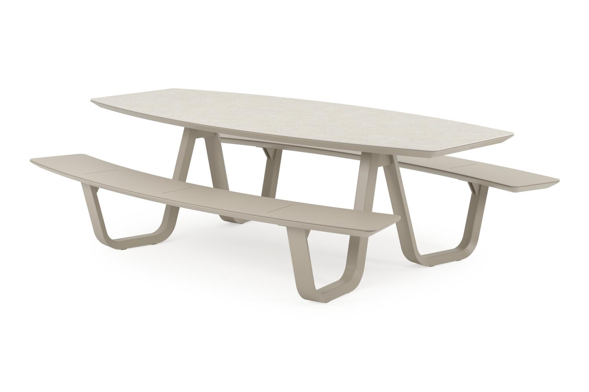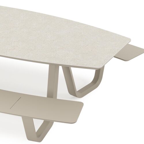 Forno picknicktafel bootvorm in beige aluminium en volkeramiek Shilin - L 240 x B 181 x H 72 cm | Exterioo