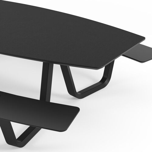Forno picknicktafel bootvorm in zwart aluminium en volkeramiek nero black tafelblad - L 280 x B 192 x 72 cm | Exterioo