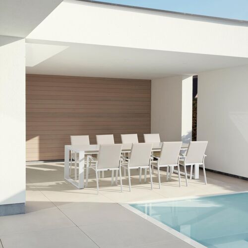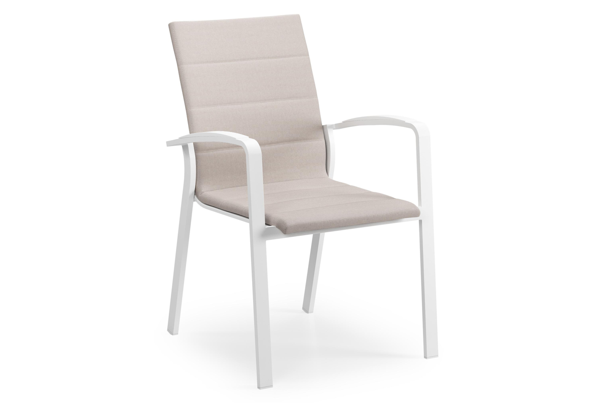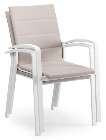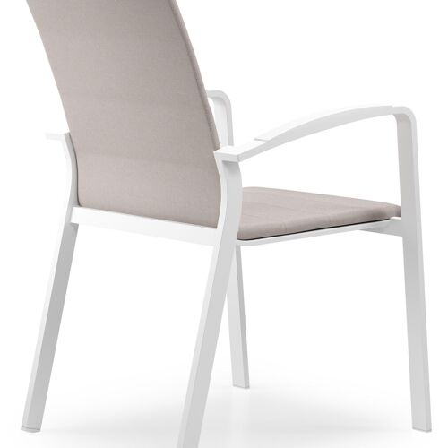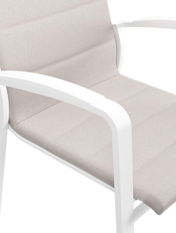 Lioni stapelbare tuinstoel in wit aluminium en beige luxe textilene | Exterioo