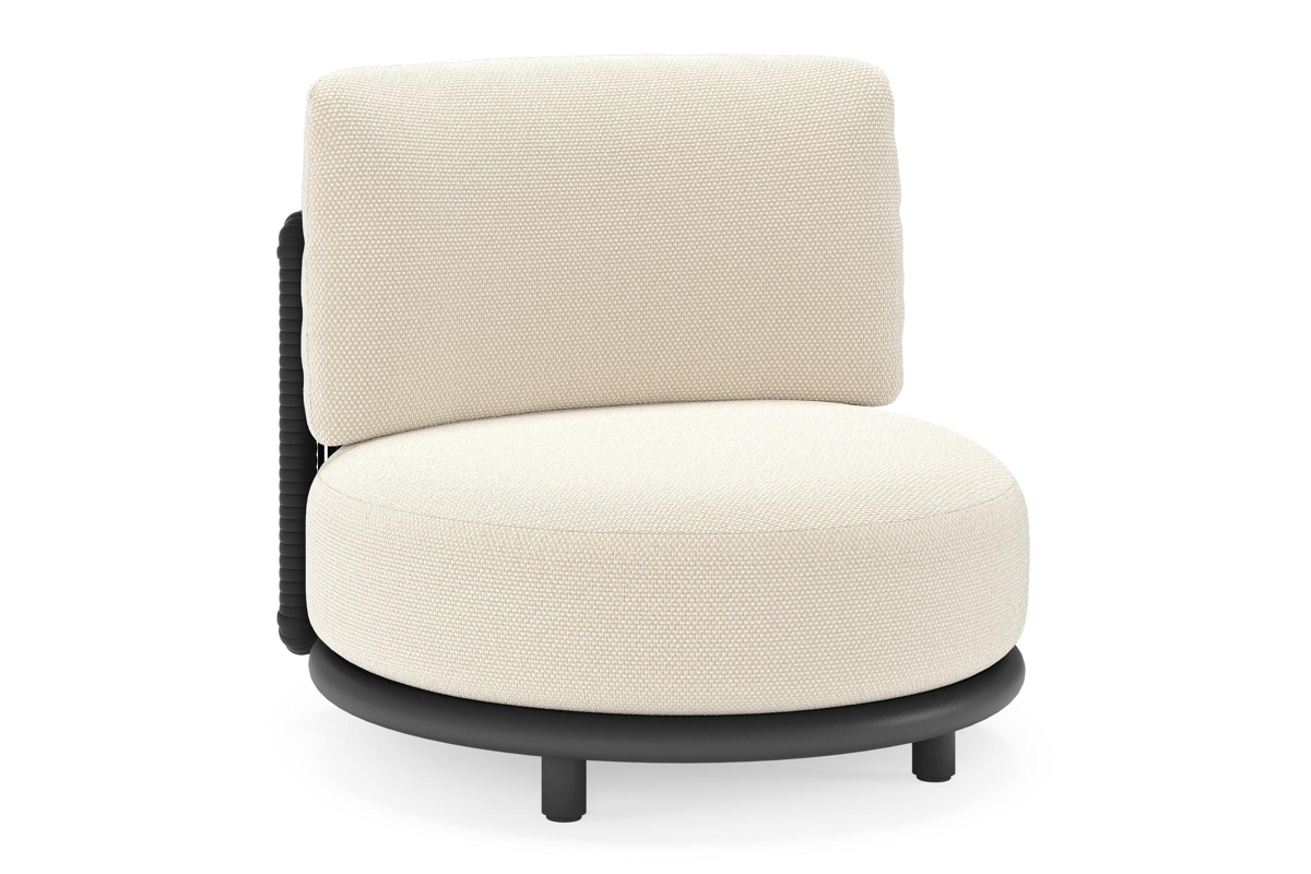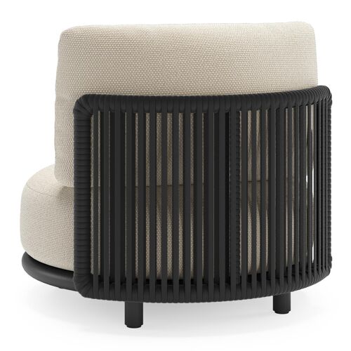 Lomano loungestoel in zwart aluminium en beige verticaal geweven luxe vlakke rope met althea off white all weather cosytica kussen | Exterioo