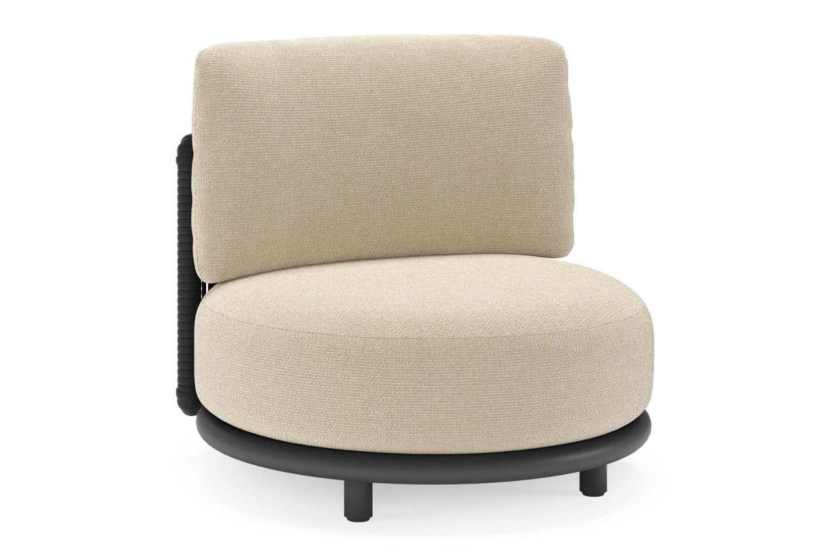Lomano loungestoel in zwart aluminium en beige verticaal geweven luxe vlakke rope met althea chalk all weather cosytica kussen | Exterioo