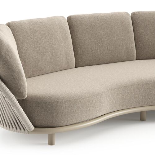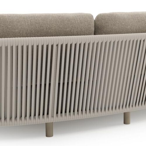 Lupino loungeset in beige aluminium en beige verticaal geweven luxe vlakke brede rope met chartres pewter all weather sunbrella® luxe kussen | Exterioo