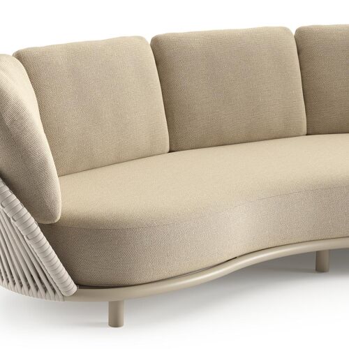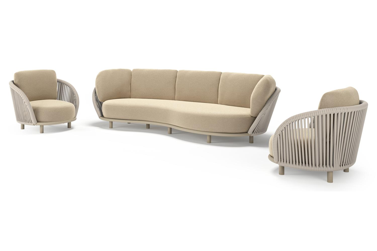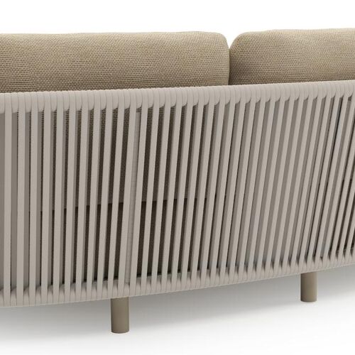 Lupino loungeset in beige aluminium en beige verticaal geweven luxe vlakke brede rope met althea camel all weather cosytica kussen | Exterioo