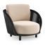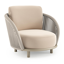 Lupino loungestoel in zwart aluminium en zwart verticaal geweven luxe vlakke brede rope met natte linen chalk all weather sunbrella® luxe kussen | Exterioo