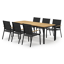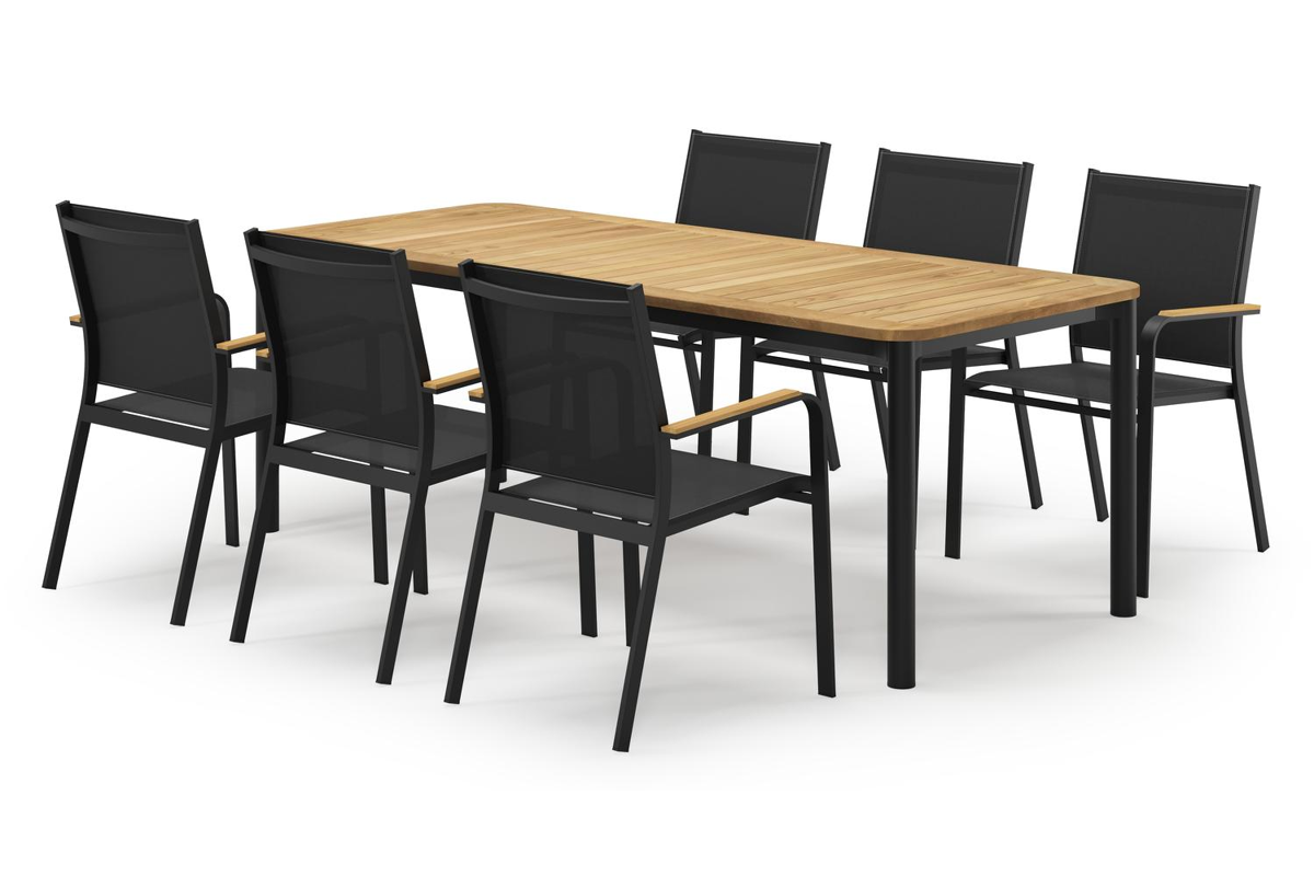 Mira rechthoekige afgeronde tuinset in zwart aluminium en teak natural finish met 6 Amalfi tuinstoelen | Exterioo