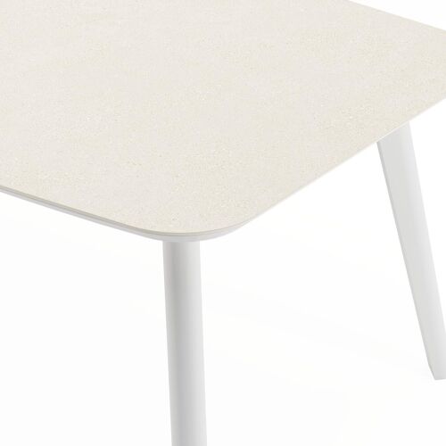De Mosa tuintafel herken je makkelijk aan het afgerond rechthoekig tafelblad en de naar buiten afgeschuinde poten. De tafel heeft een moderne look met een elegante touch.