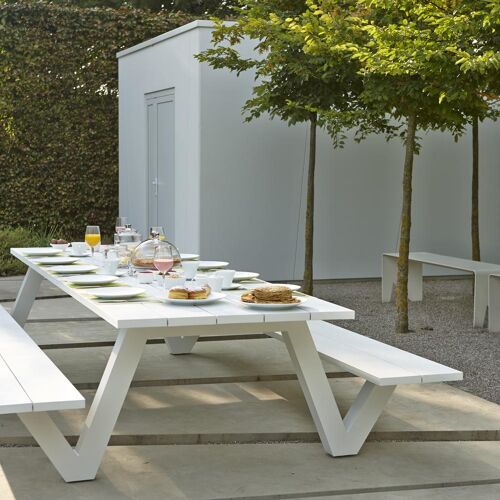 Norma picknicktafel in wit aluminium - L 300 x B 213 x H 74 cm | Exterioo