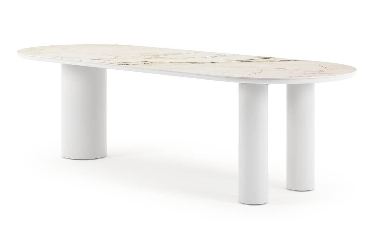 De Organo tuintafel onderscheidt zich door zijn uniek ontwerp, met een organisch gevormd tafelblad dat een eigentijdse uitstraling heeft. De tafel rust op een robuuste, dikke ronde poot en twee fijne ronde poten. Samen creëren ze een meesterlijke balans tussen luxe en moderniteit, waardoor deze tafel het pronkstuk van je buitenruimte wordt.