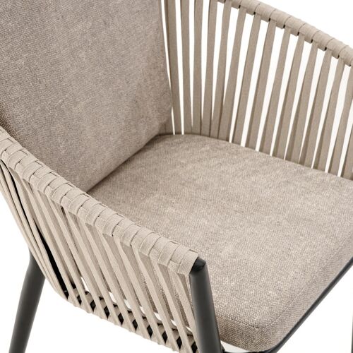 De Orso tuinstoel past ideaal in jouw tuin of terras. Hij is onderdeel van het assortiment dankzij zijn beige uitvoering. Het design van de stoel is trendy en beschikt over een speciale rope uitvoering. Het frame van de stoel is gemaakt uit aluminium, een stevig en roestvrij materiaal dat makkelijk te verplaatsen is. De zitting van de stoel is gemaakt uit rope, een stevig en mooi materiaal. Inclusief is het kussen in Sunbrella Luxe uitvoering. Geniet van je buitenmoment en relax in de Orso tuinstoel.
