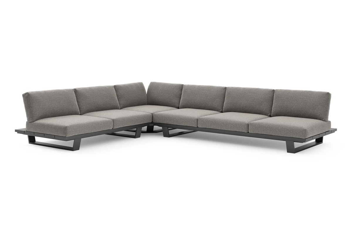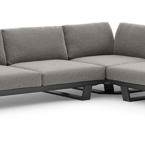 Pagino loungehoek in zwart aluminium met chartres drizzle all weather sunbrella® luxe kussen | Exterioo
