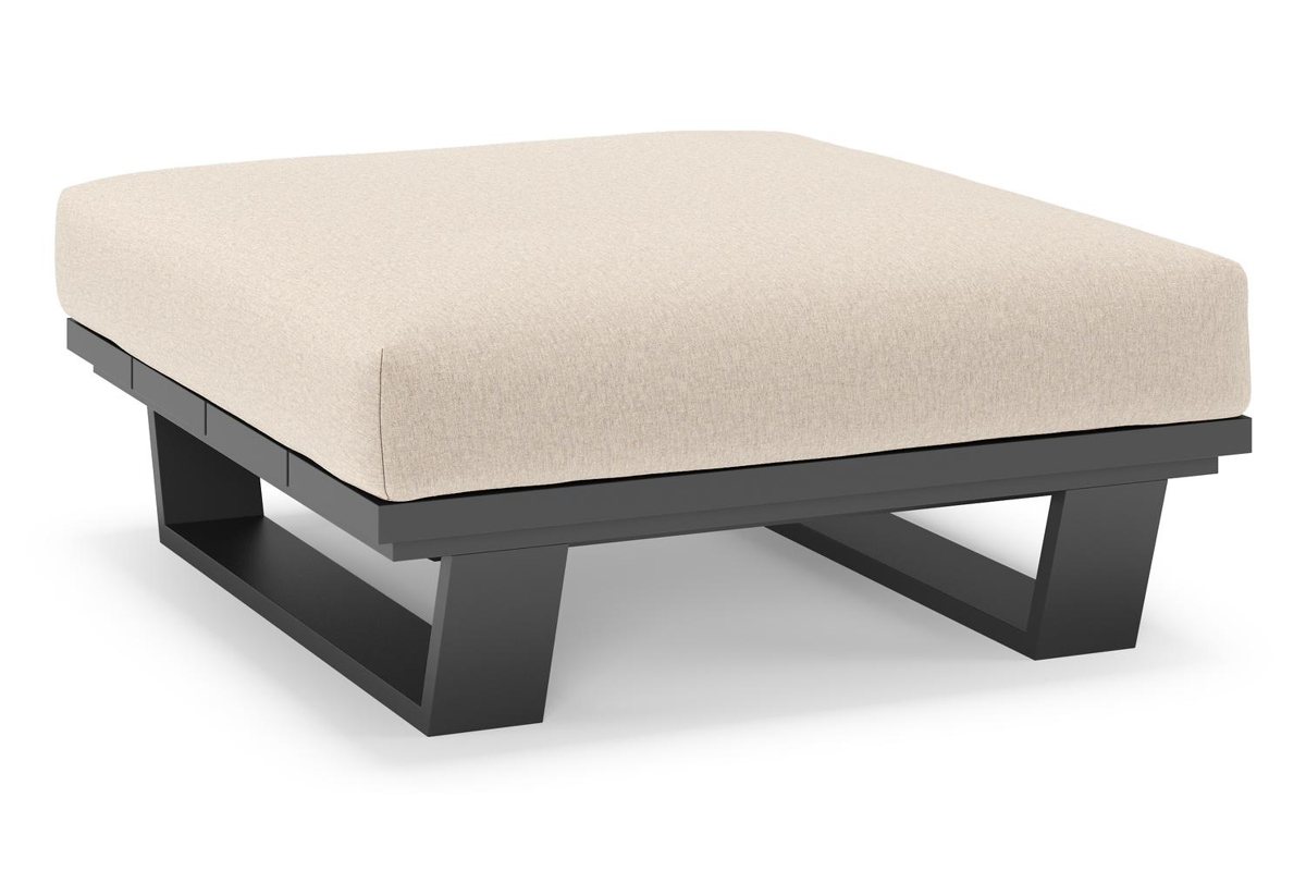 Pagino poef in zwart aluminium met heritage ash all weather sunbrella® luxe kussen | Exterioo