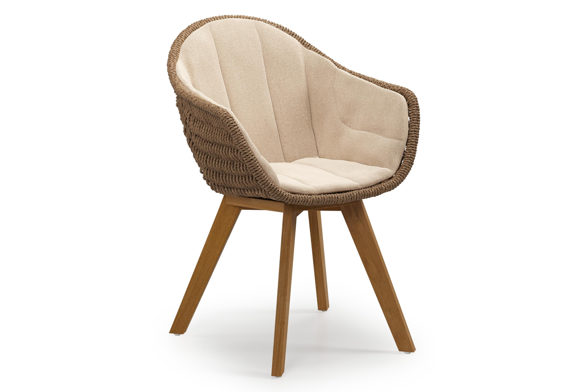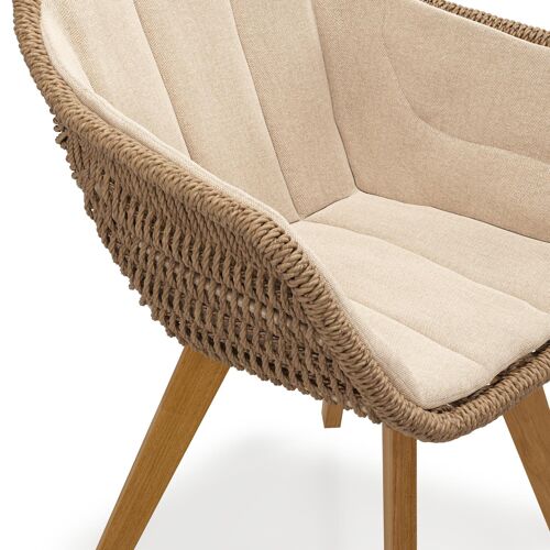 Pagino tuinstoel in teak en bruin ronde wicker met zitkussen in All Weather Sunbrella® Luxe Natte Heather Beige | Exterioo