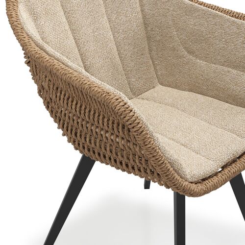 Pagino tuinstoel in zwart aluminium en bruin ronde wicker met zitkussen in All Weather Cosytica Madagascar Oak | Exterioo