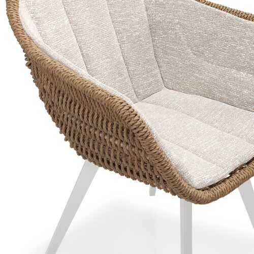 Pagino tuinstoel in wit aluminium en bruin ronde wicker met zitkussen in All Weather Sunbrella® Luxe Tundra Sand | Exterioo