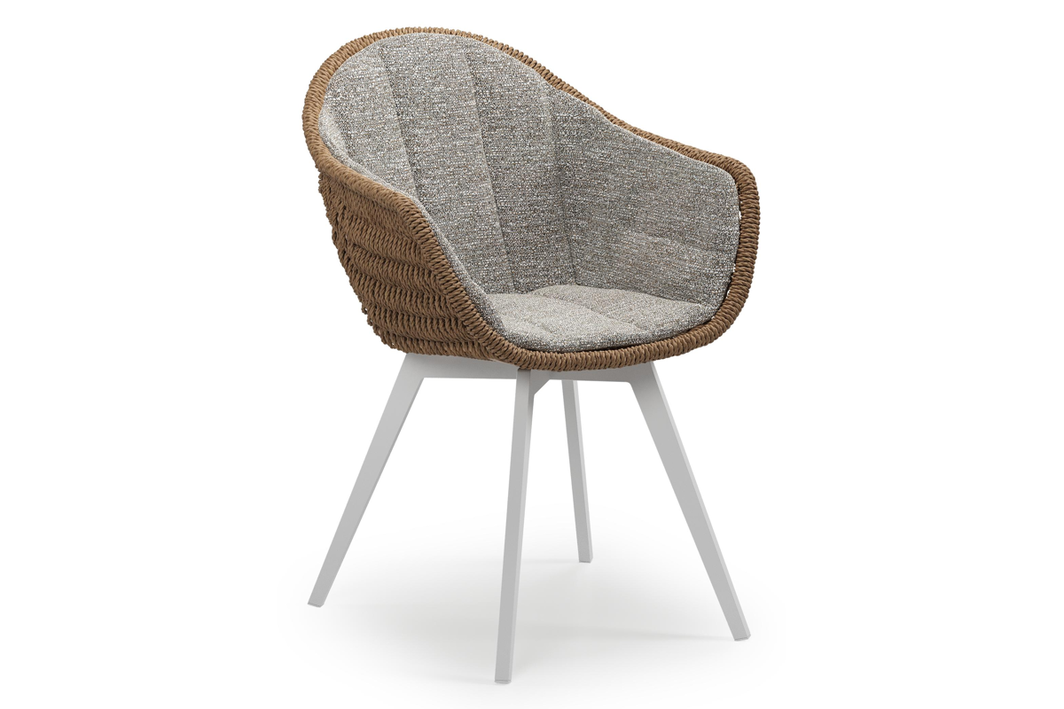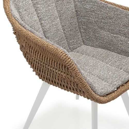 Pagino tuinstoel in wit aluminium en bruin ronde wicker met zitkussen in All Weather Sunbrella® Luxe Tundra Pepper | Exterioo