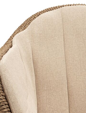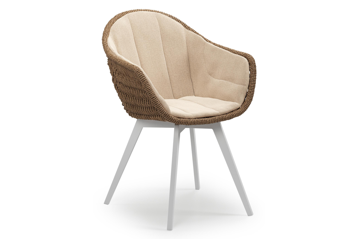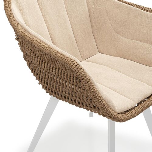 Pagino tuinstoel in wit aluminium en bruin ronde wicker met zitkussen in All Weather Sunbrella® Luxe Natte Heather Beige | Exterioo