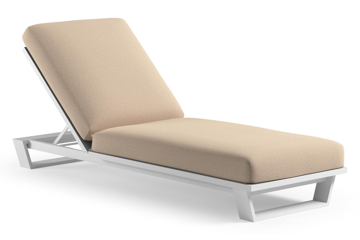 Pagino verstelbaar ligbed in wit aluminium met heritage papyrus all weather Sunbrella® luxe kussen | Exterioo