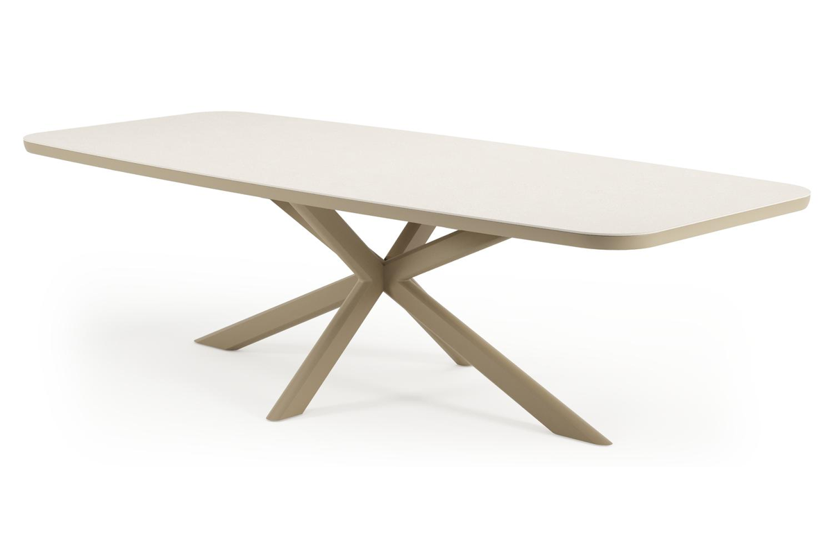 Pamplona tuintafel bootvorm in beige aluminium en sintered stone Crema minerale - L 267.4 x B 115 x H 73 cm | Exterioo
